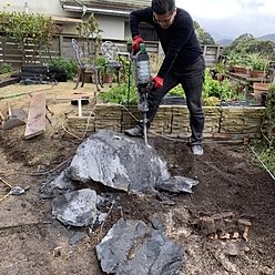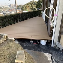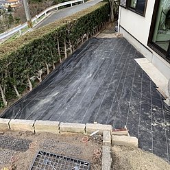 那珂川市I様宅 庭石撤去切株除去整地防草シートウッドデッキ施工